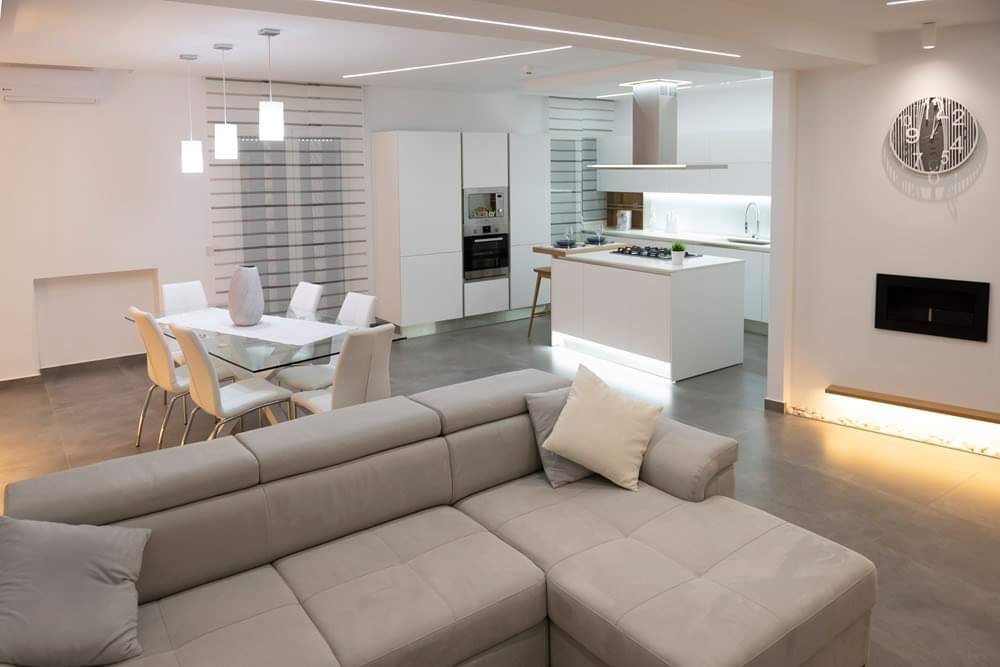 La zona living è composta dalla parete Sangiacomo e dal divano Calia.