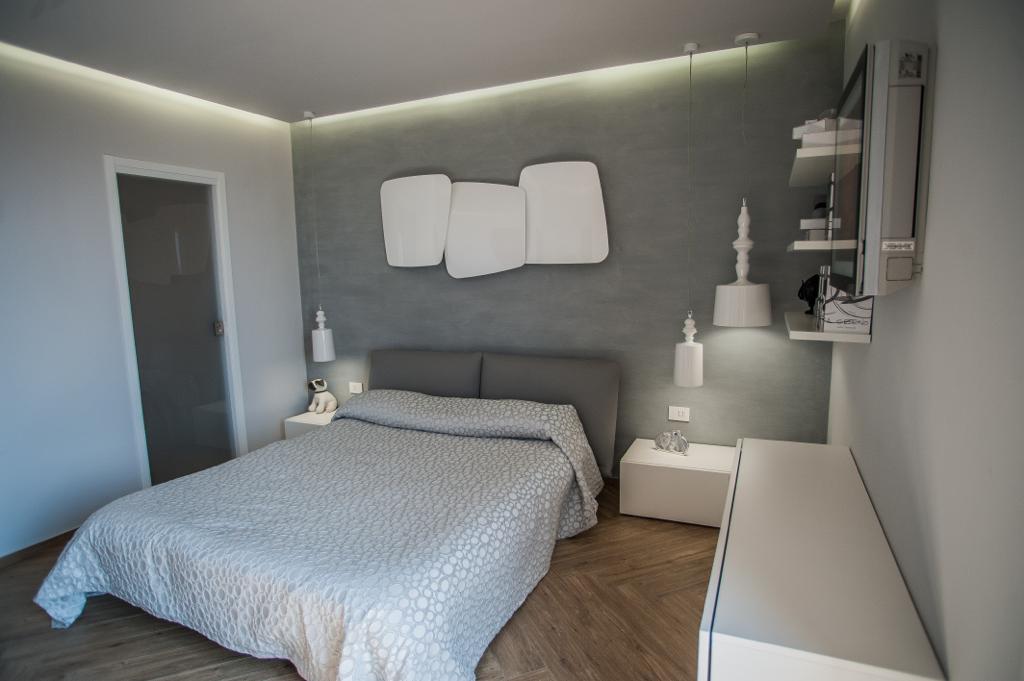 La camera da letto è interamente firmata Sangiacomo.