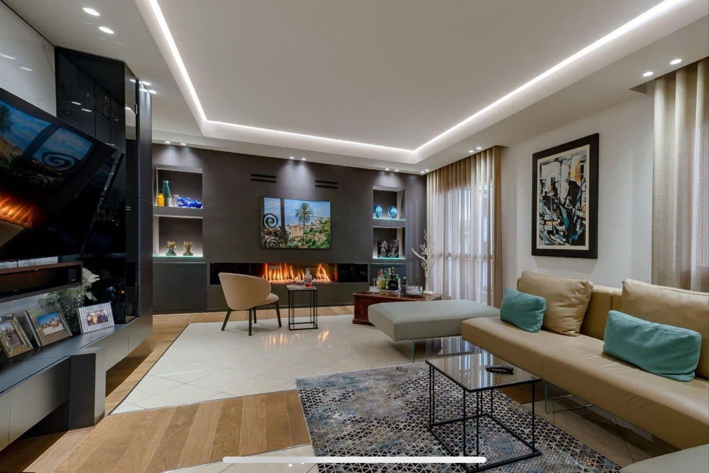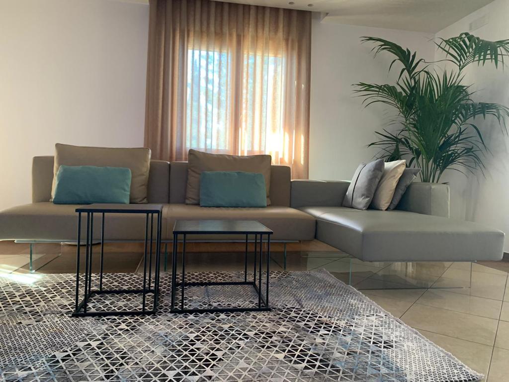 La zona living invece è arredata con il divano Lago e la poltrona ed i tavolini Calligaris.