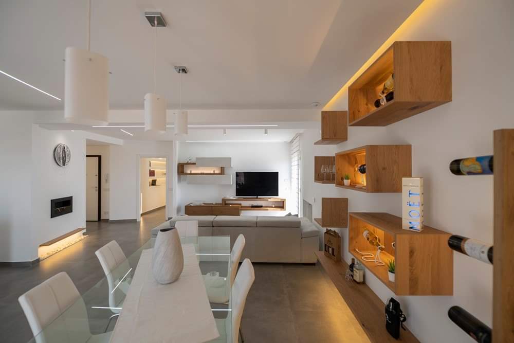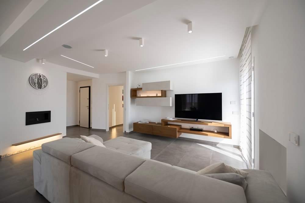 La zona living è composta dalla parete Sangiacomo e dal divano Calia.
