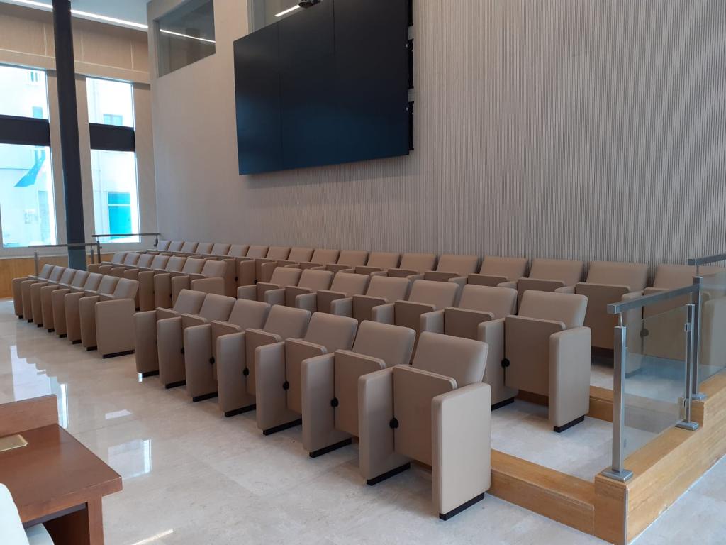 Abbiamo arredato la sala consiliare del comune di Olbia, in Sardegna, scegliendo le poltrone Frau sia per i consiglieri comunali che per il pubblico in sala.