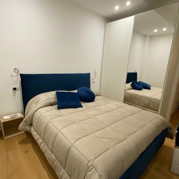 La stanza da letto invece è stata composta dal letto Dorelan e dall’armadio Sangiacomo.